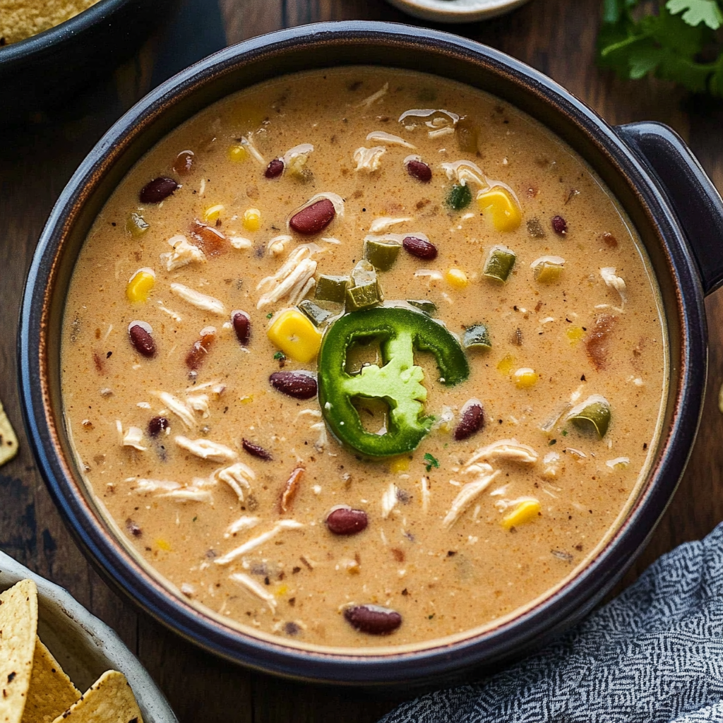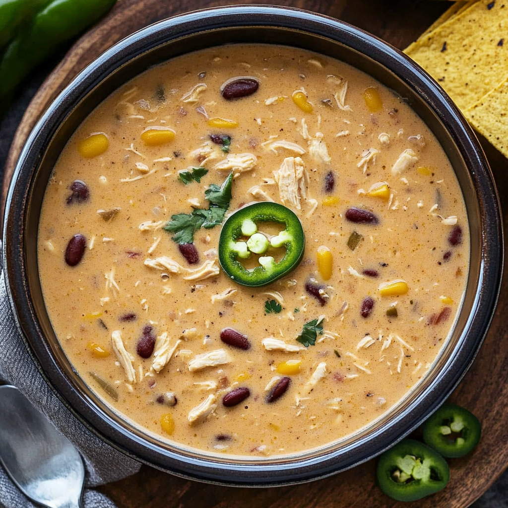 Creamy Chicken Taco Soup is a delightful and hearty dish that brings warmth and flavor to your table. Perfect for busy weeknights or cozy family dinners, this easy-to-make soup is loaded with tender chicken, nutritious beans, vibrant corn, and creamy cheese, all infused with zesty spices. Enjoy it topped with fresh jalapeños, cilantro, and a squeeze of lime for an extra burst of flavor. This one-pot wonder not only minimizes cleanup but also offers endless customization options to suit every palate. Whether you’re serving it as a main course or pairing it with sides like cornbread or guacamole, Creamy Chicken Taco Soup is sure to be a hit!