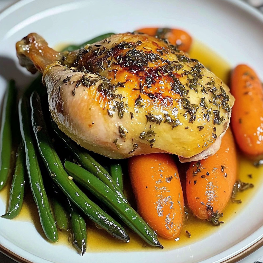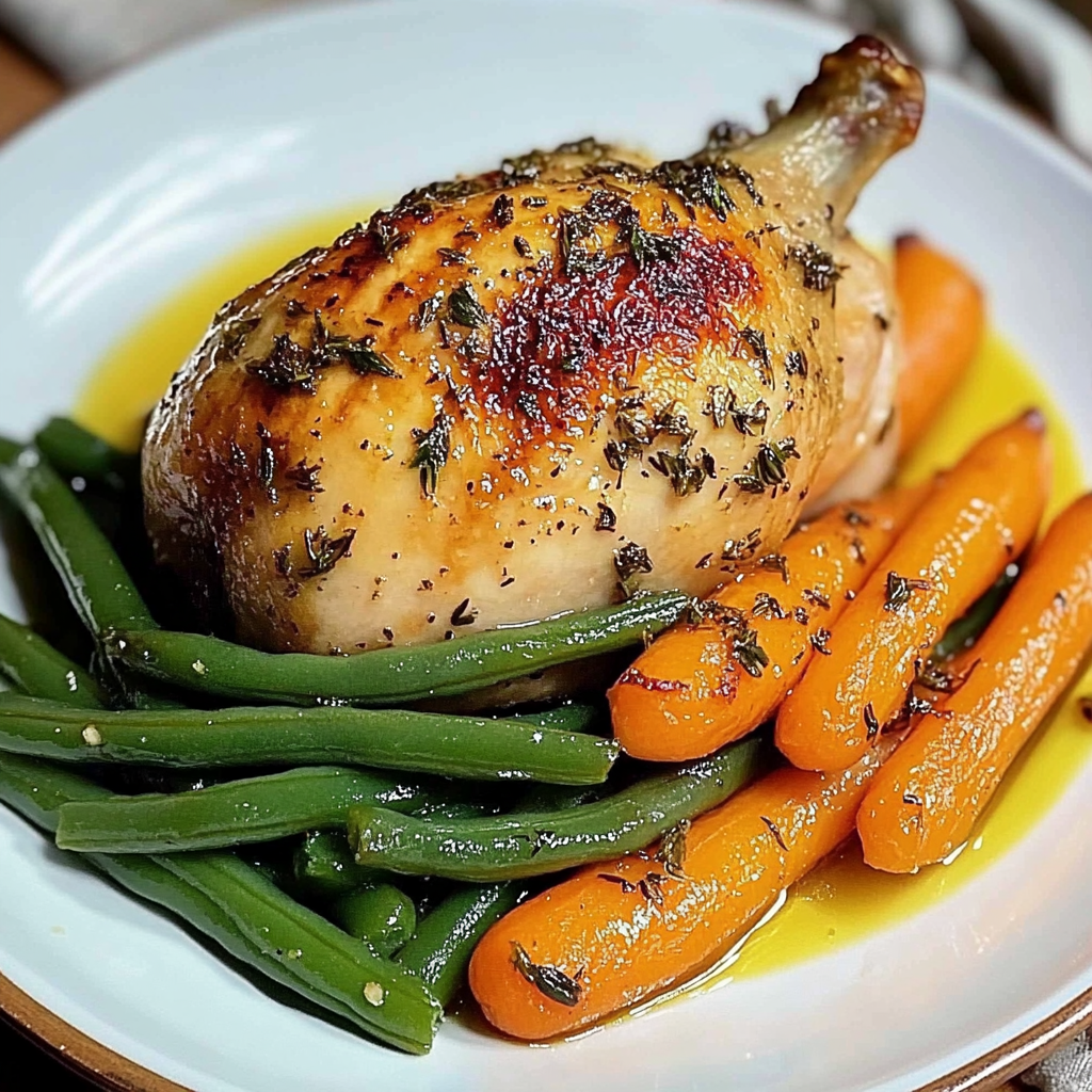 Herb Roasted Chicken with Garlic Green Beans & Glazed Carrots is a delightful dish that combines savory flavors with vibrant colors. It’s perfect for weeknight dinners or special occasions alike. Feel free to customize it by adding your favorite vegetables or adjusting the seasonings to suit your taste!