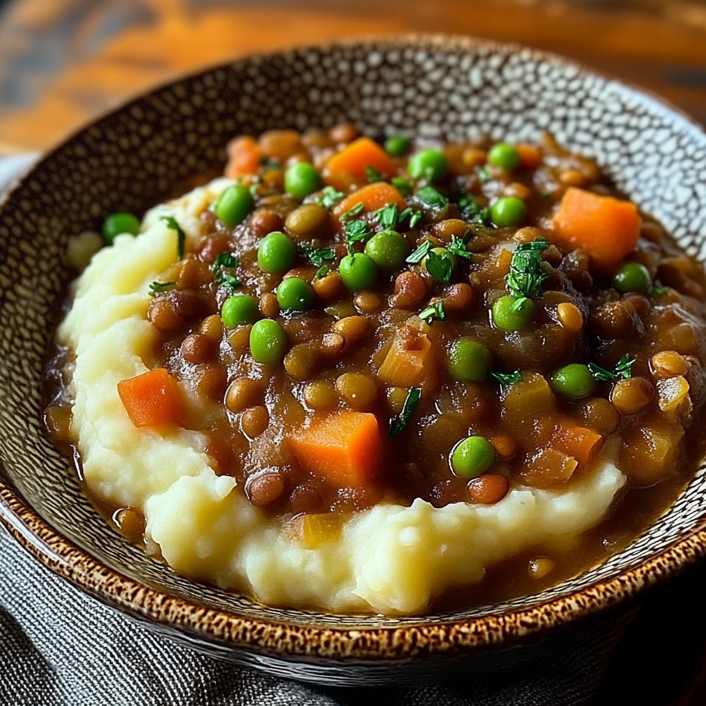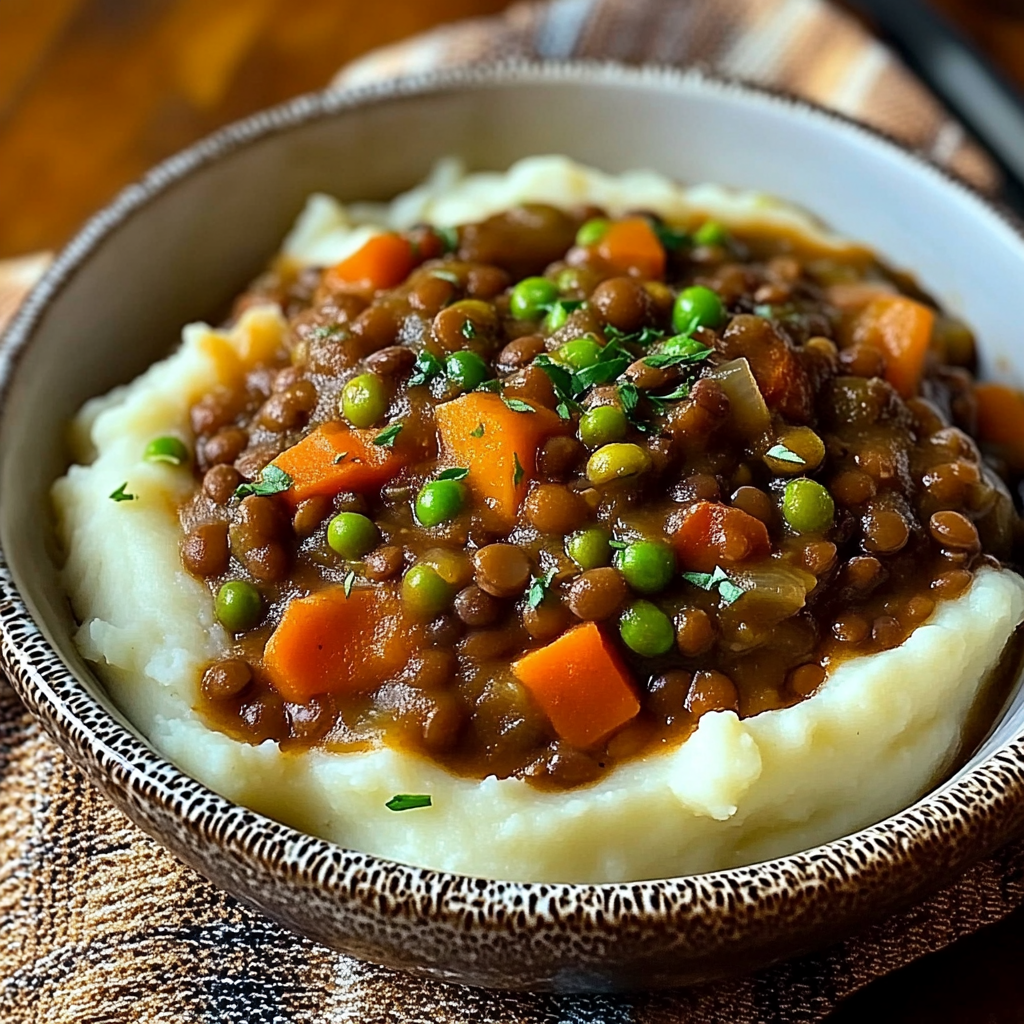 Warm up with a delicious bowl of Lentil Stew Over Mashed Potatoes! This comforting dish combines protein-rich lentils simmered with hearty vegetables and aromatic herbs, served atop creamy mashed potatoes. Perfect for chilly evenings or cozy family dinners, this meal is not just satisfying but also packed with nutrients. The blend of robust flavors from the stew and the smooth texture of the mashed potatoes creates a delightful experience that is sure to please everyone at the table.